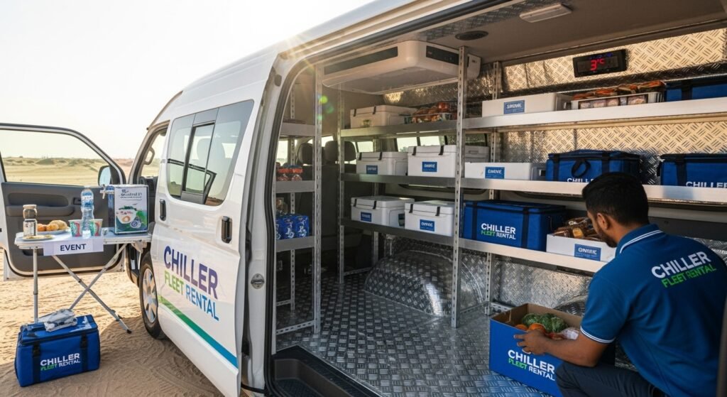 Chiller fleet is a refrigerated rental vehicle transport that can carry things that go bad quickly,like food,medication,and flowers. It maintains a cool logistics while transportation to keep goods fresh, safe, and high-quality during delivery, Businesses use chiller fleet services for catering, grocery supply, medical transport, and cold chain logistics, making them essential for industries that rely on freshness and safety.