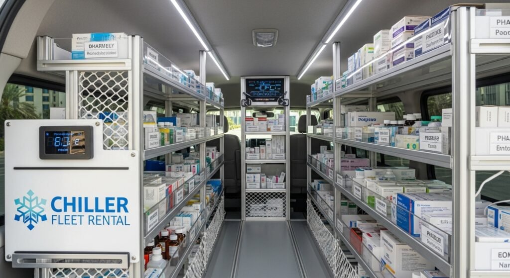 Ensure medicine safety with CHILLER FLEET Transport’s chiller van rental in Dubai and across the UAE. Our temperature-controlled, HACCP-certified refrigerated vans maintain precise cooling for pharmaceuticals. We specialize in pharmacy transport solutions, guaranteeing freshness, reliability, and compliance for every delivery. Book a chiller van for safe medicine delivery today.